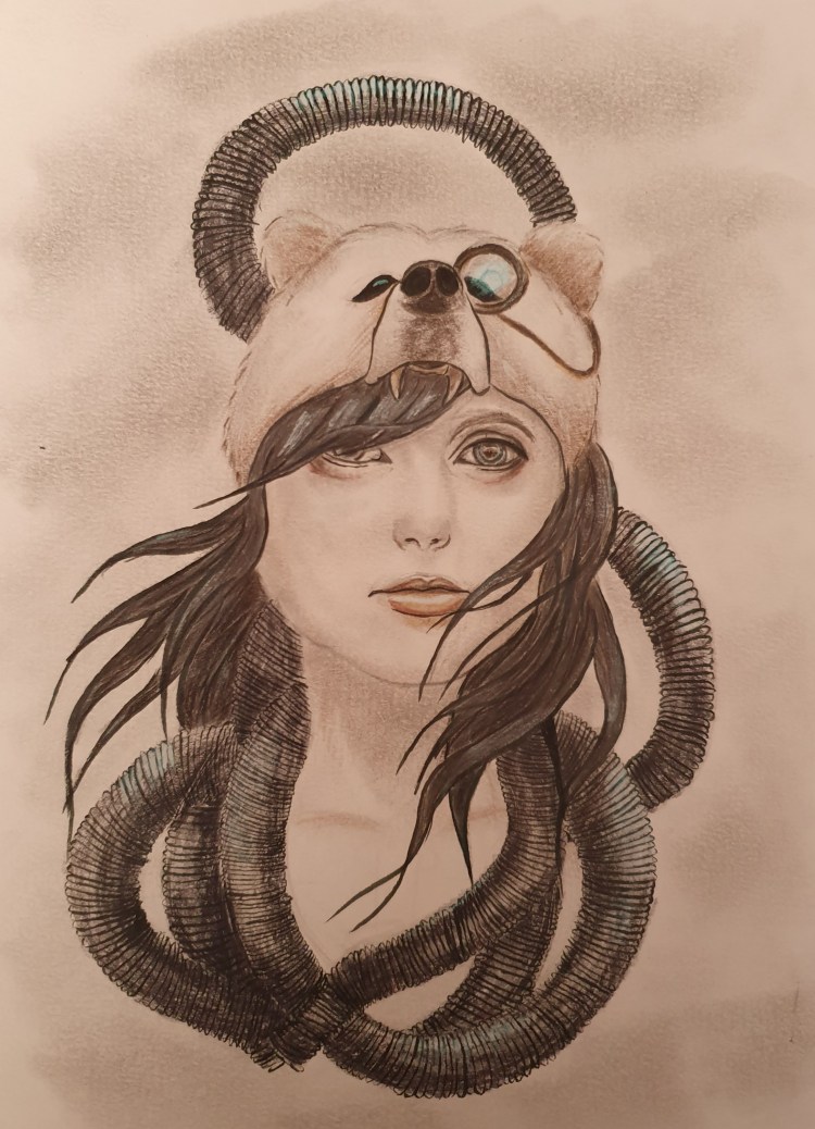 I don’t think I developed the hair enough, it looks too undeveloped, almost like in an anime, though not quite. In fact the only part I am happy with is tbe bear hat, though its slightly misshapen.