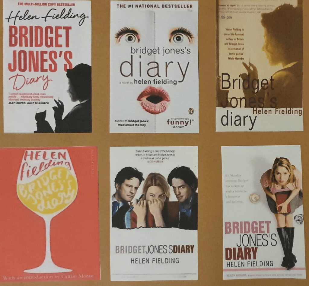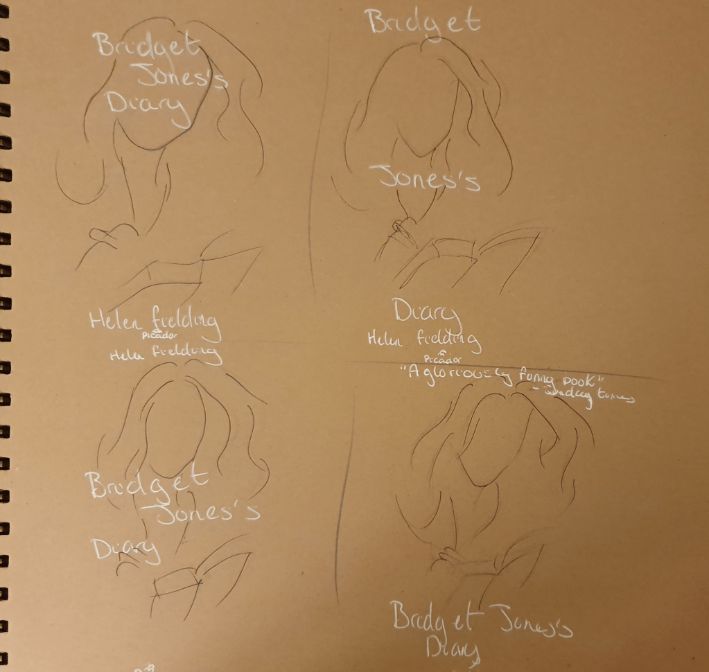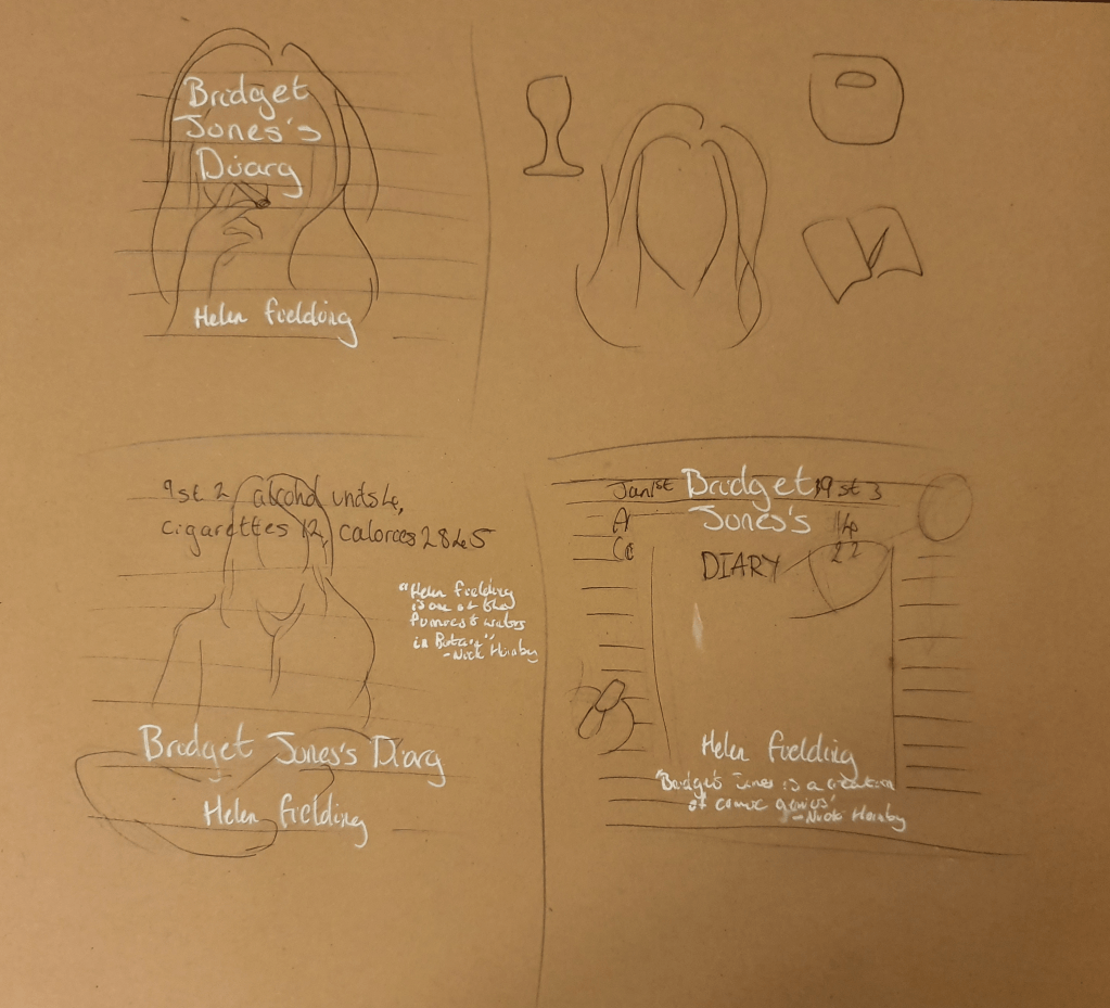 To begin this exercise I researched the creation of a book cover. To do this I used websites and Skillshare videos. I looked into the purpose of a mock-up and different methods used for a book cover. I then created a moodboard for book covers. I chose the book Bridget Jones’s Diary as I know the story well.