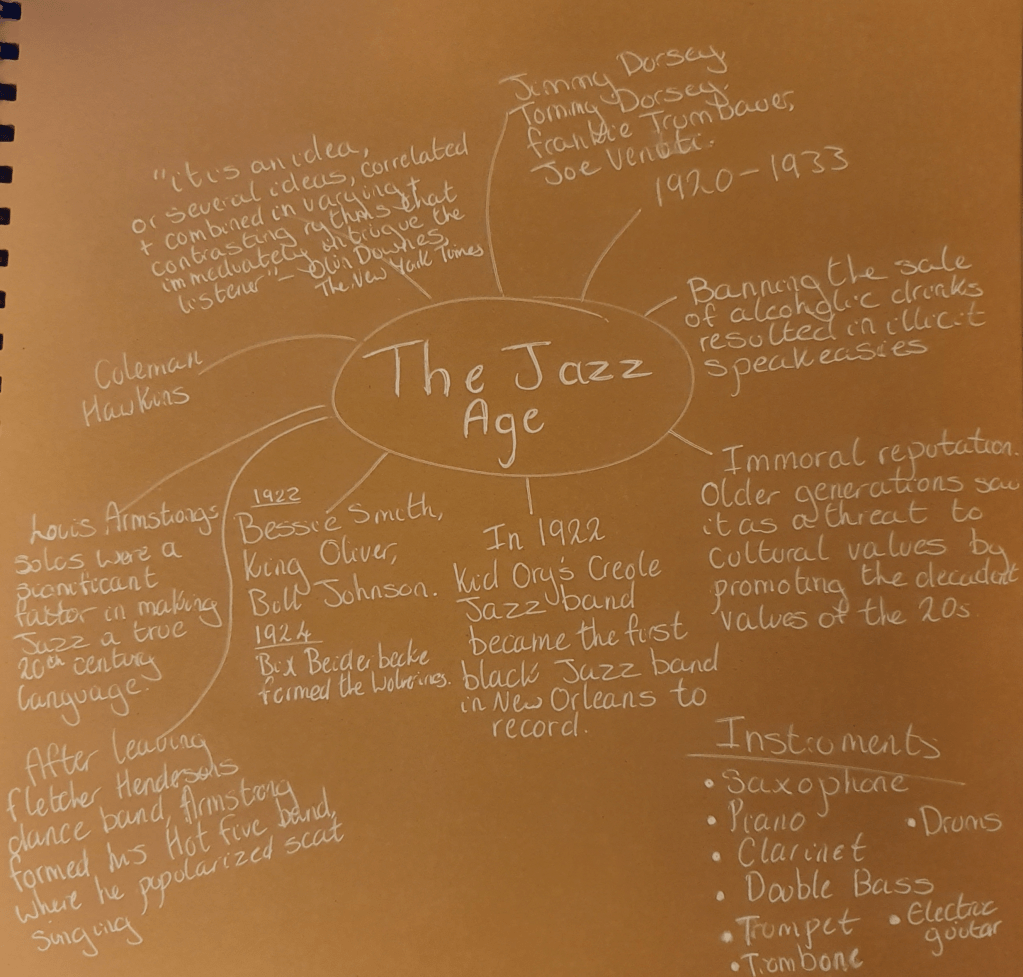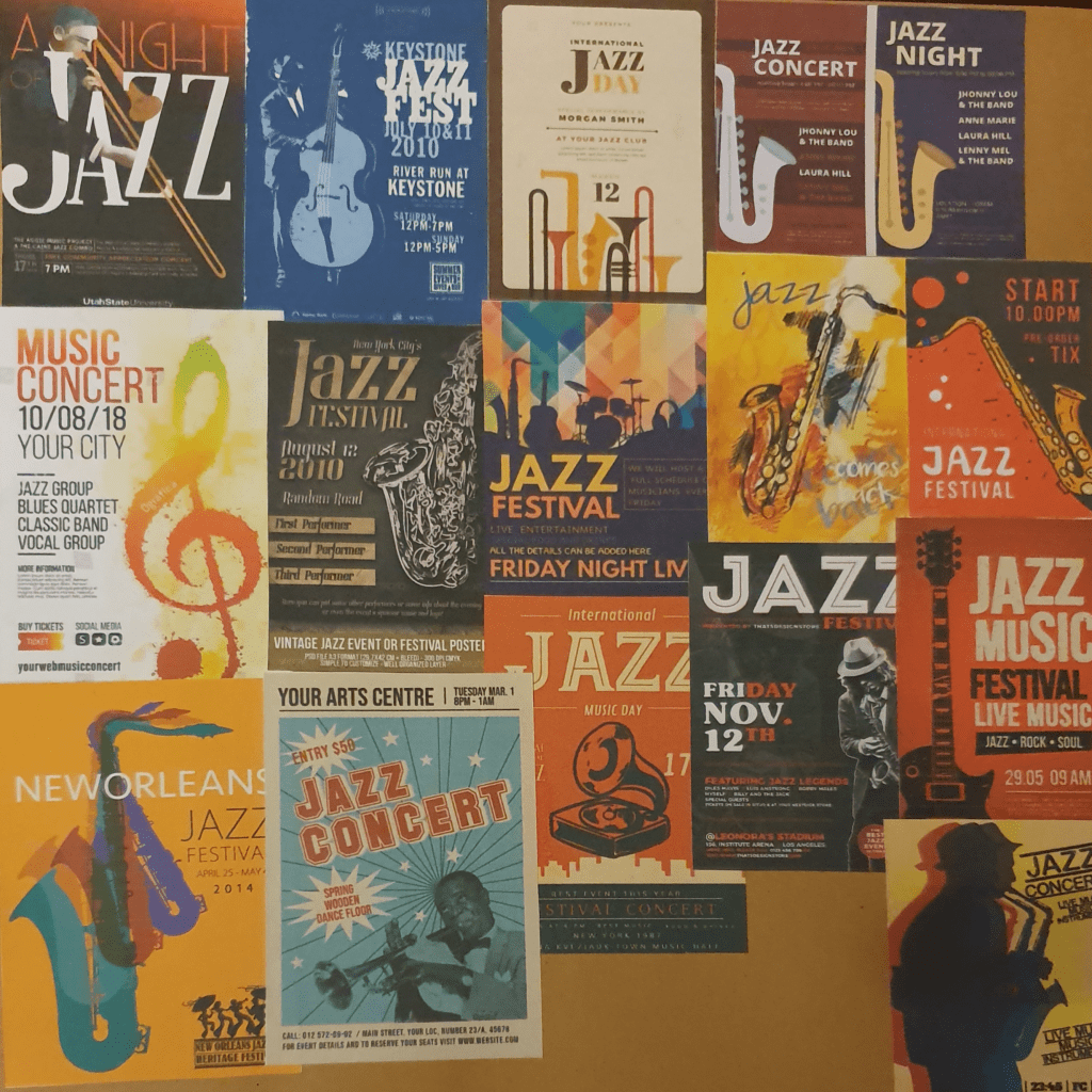 The assignment for part three was to create a poster. I cold make one for either an Early Music concert, a Jazz Event or Pop Group. I started with mind maps for jazz and pop.