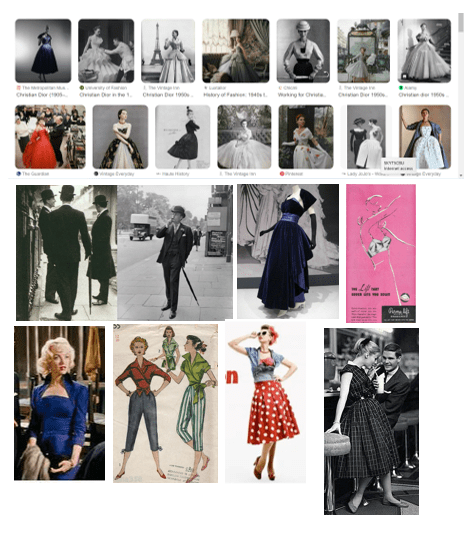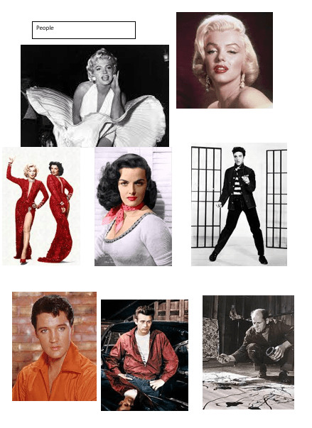 For this exercise I chose to research the 50s as it’s a decade I feel connected to. I used the internet and things I saw personally as material.
